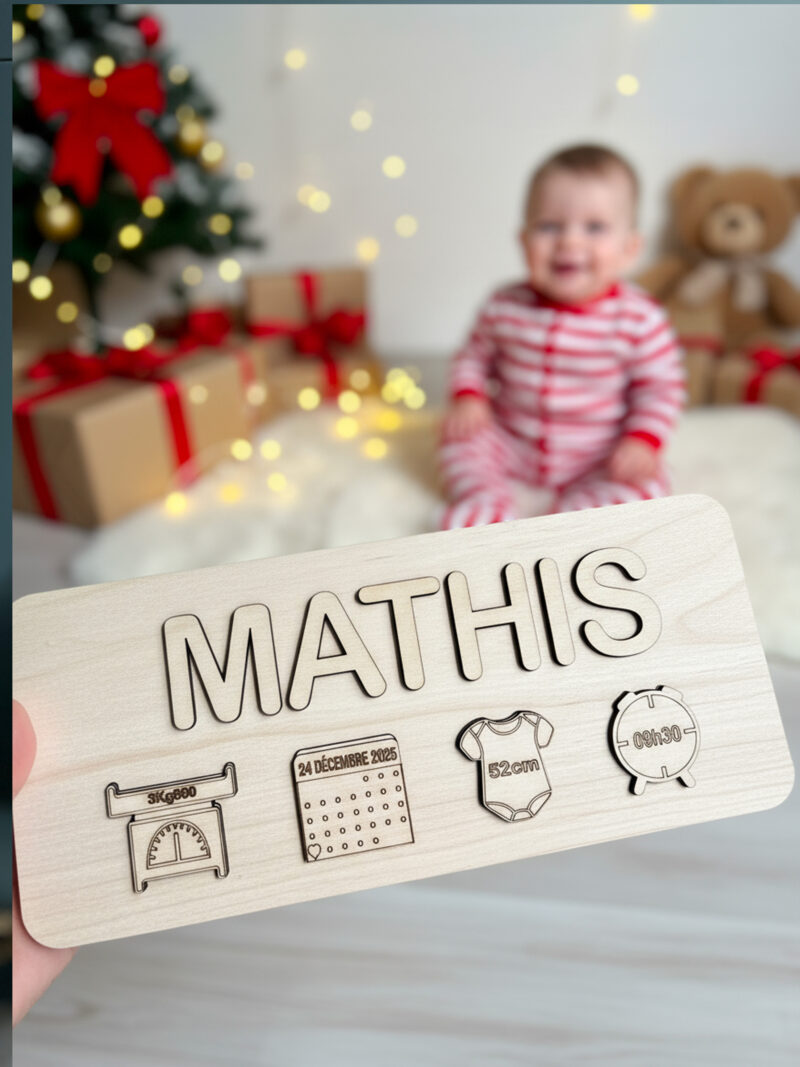Personnalisation : prénom + date de naissance + poids + taille